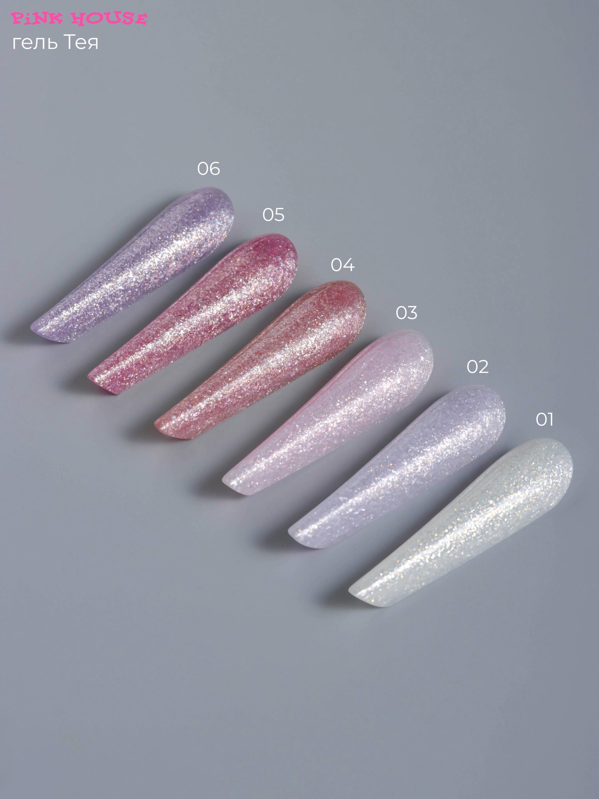 В гелях Тея плотно-плотно друг другу собраны миллиарды микро кусочков слюды. От этого на ногтях получается сразу готовое цветное покрытие, переливающееся, как чешуя рыбки в воде.